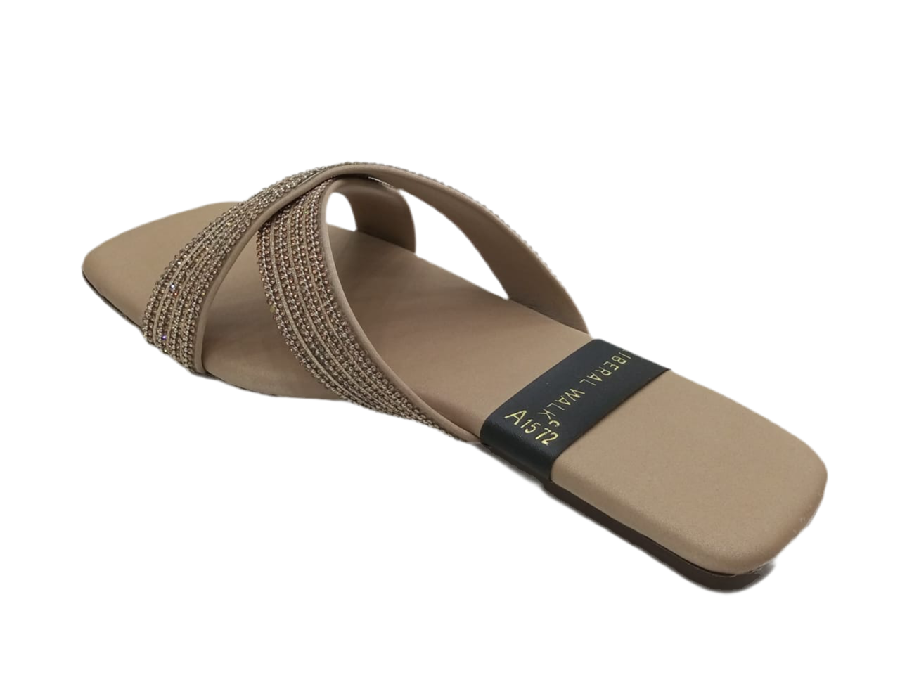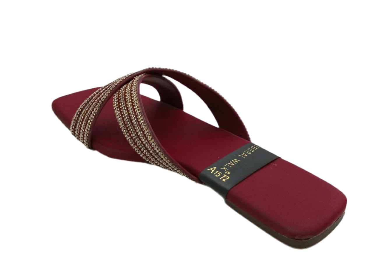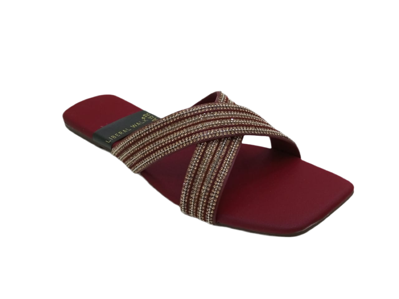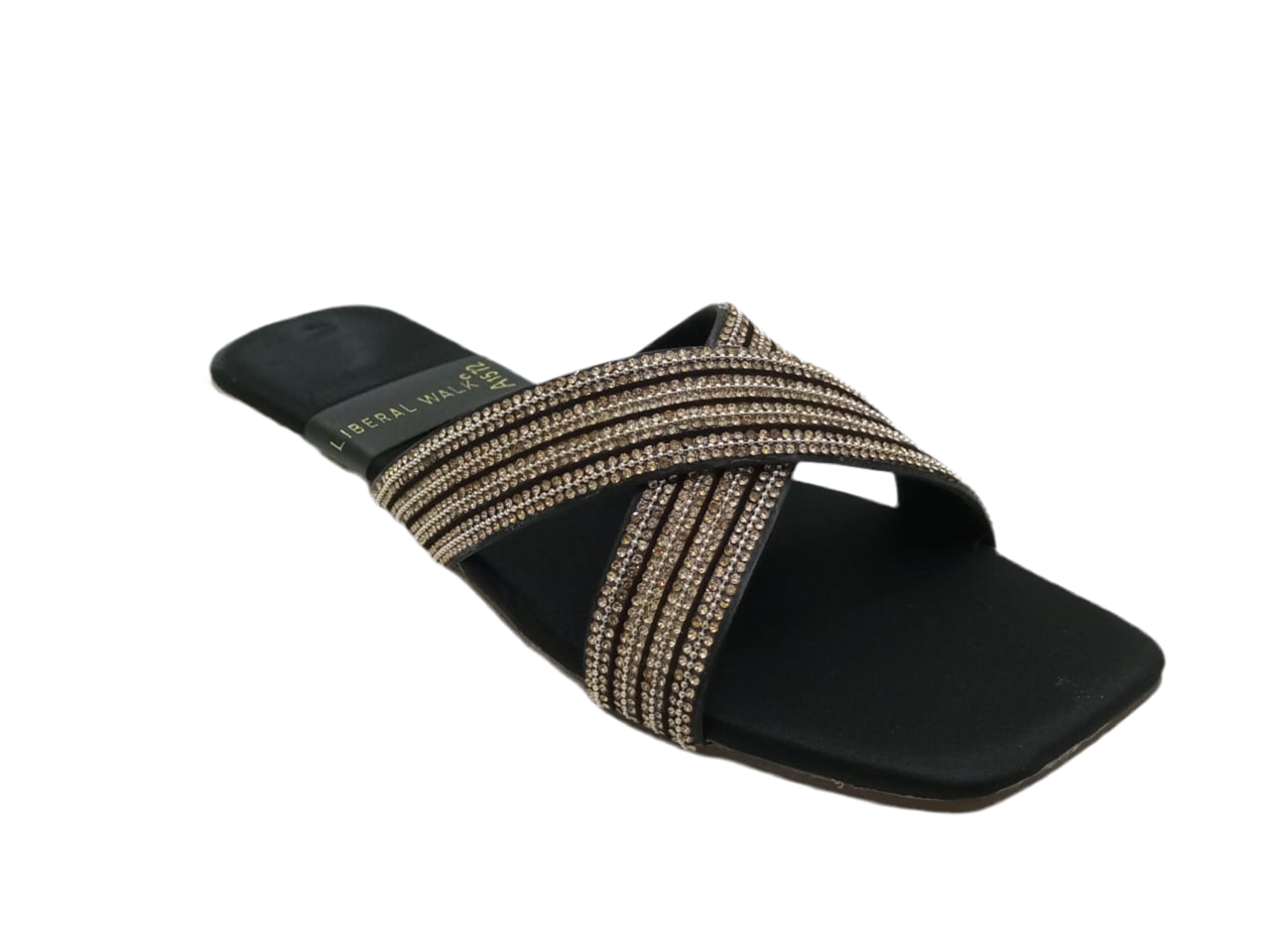 - Stylish beaded flat slippers perfect for casual and party wear.