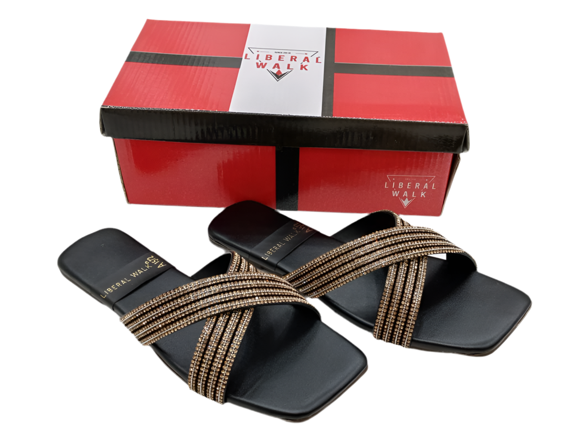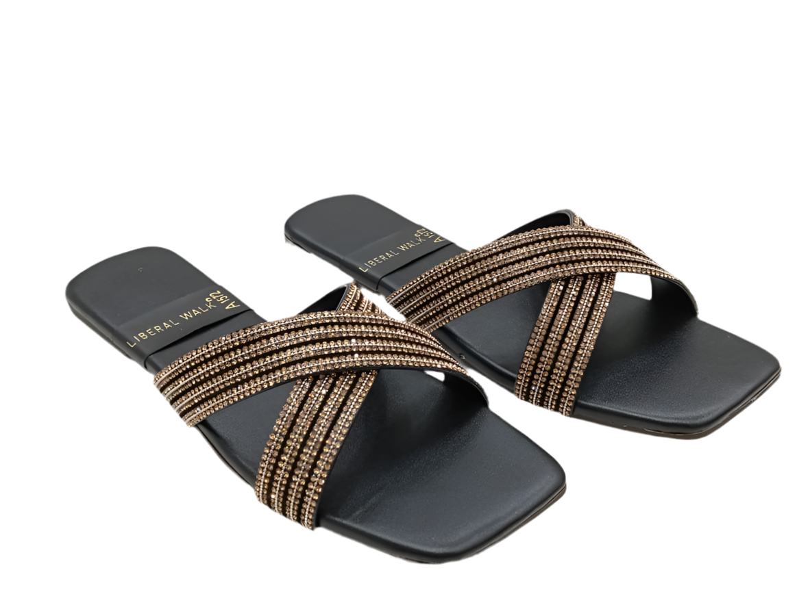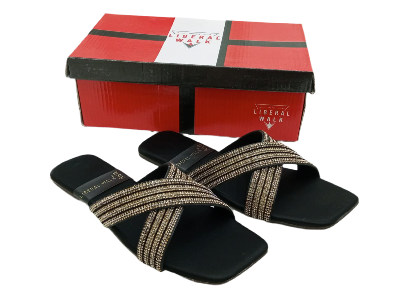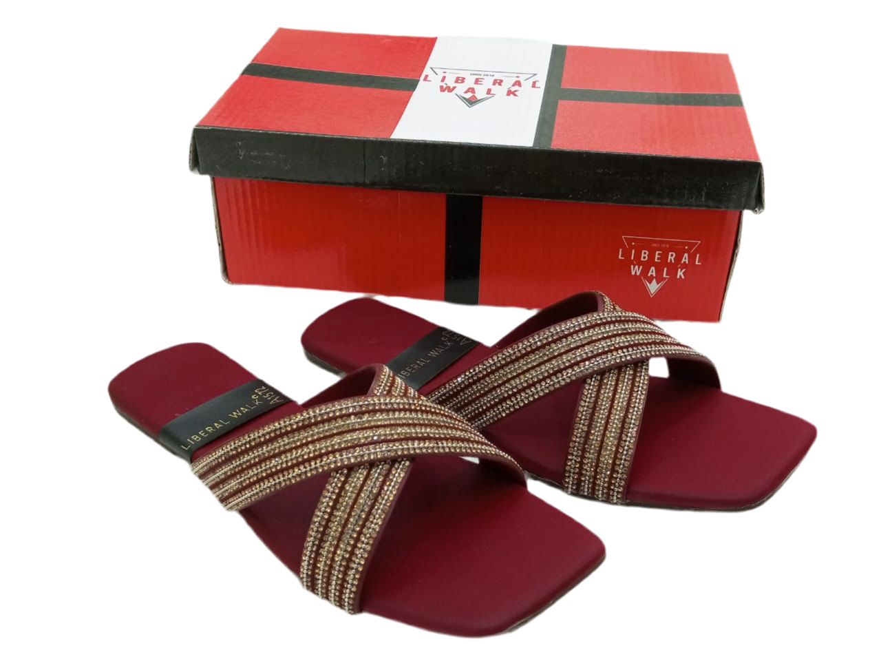 - Stylish beaded flat slippers perfect for casual and party wear.
