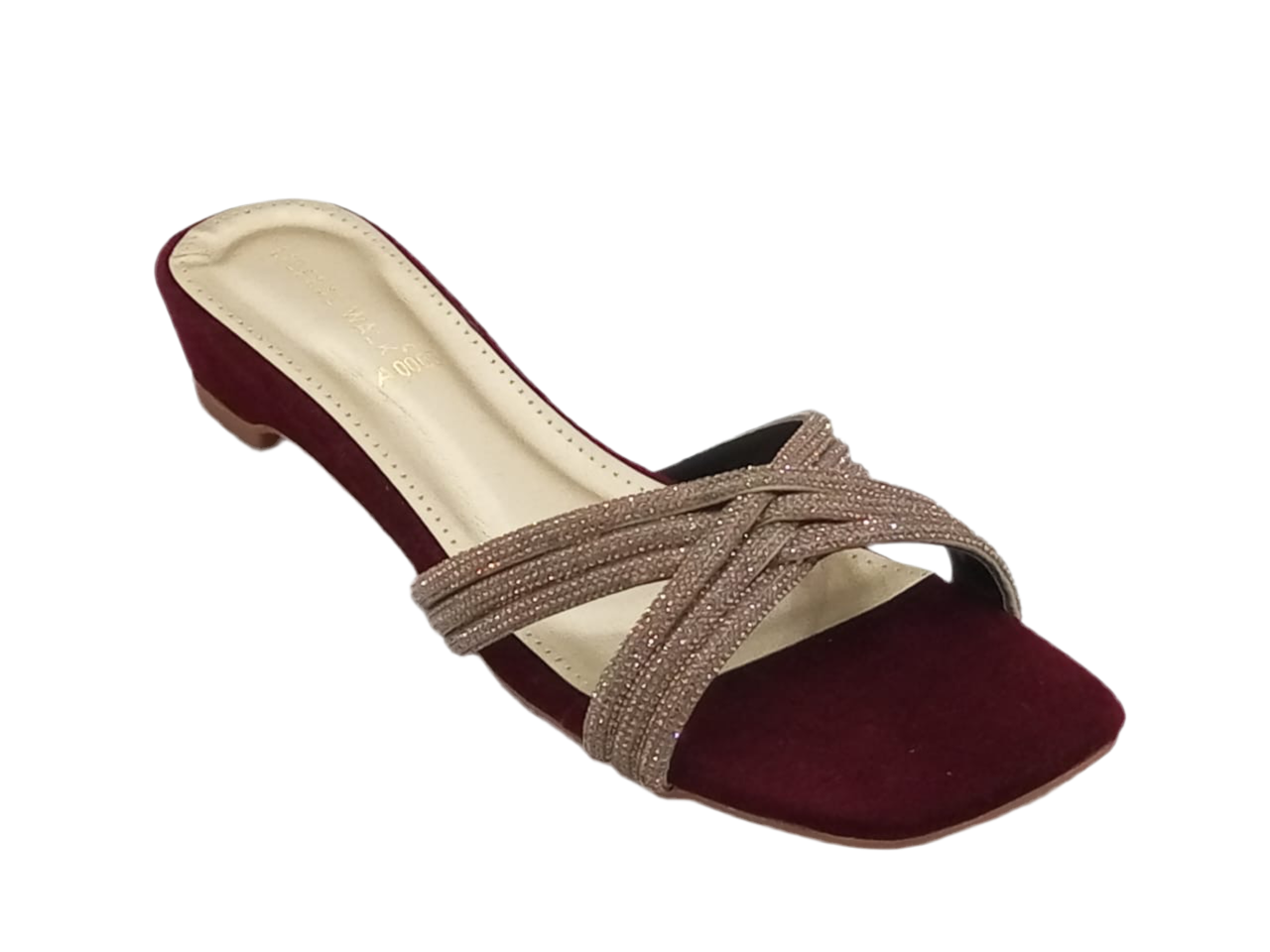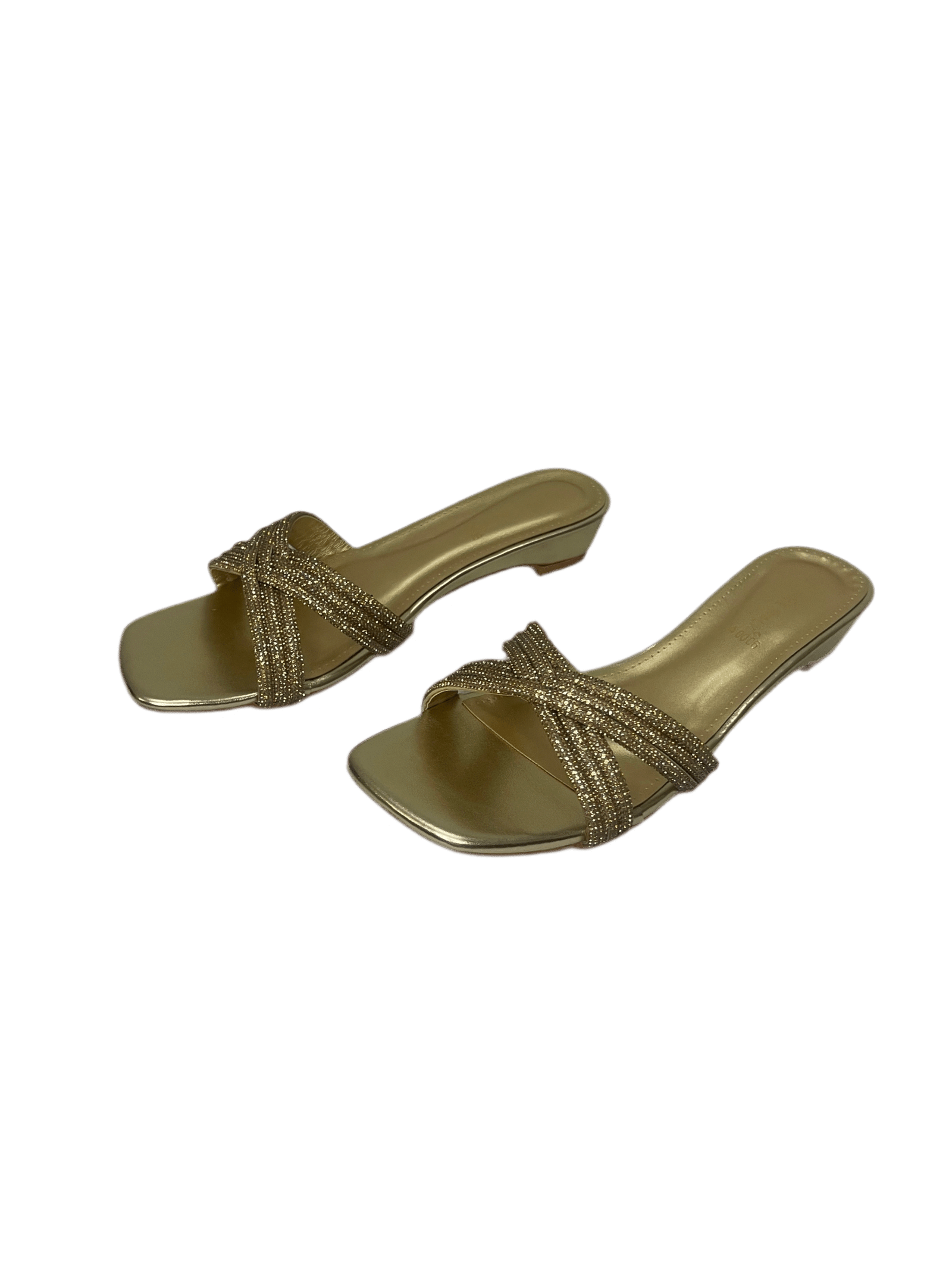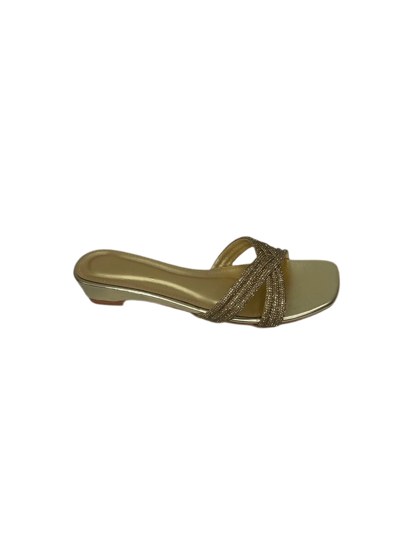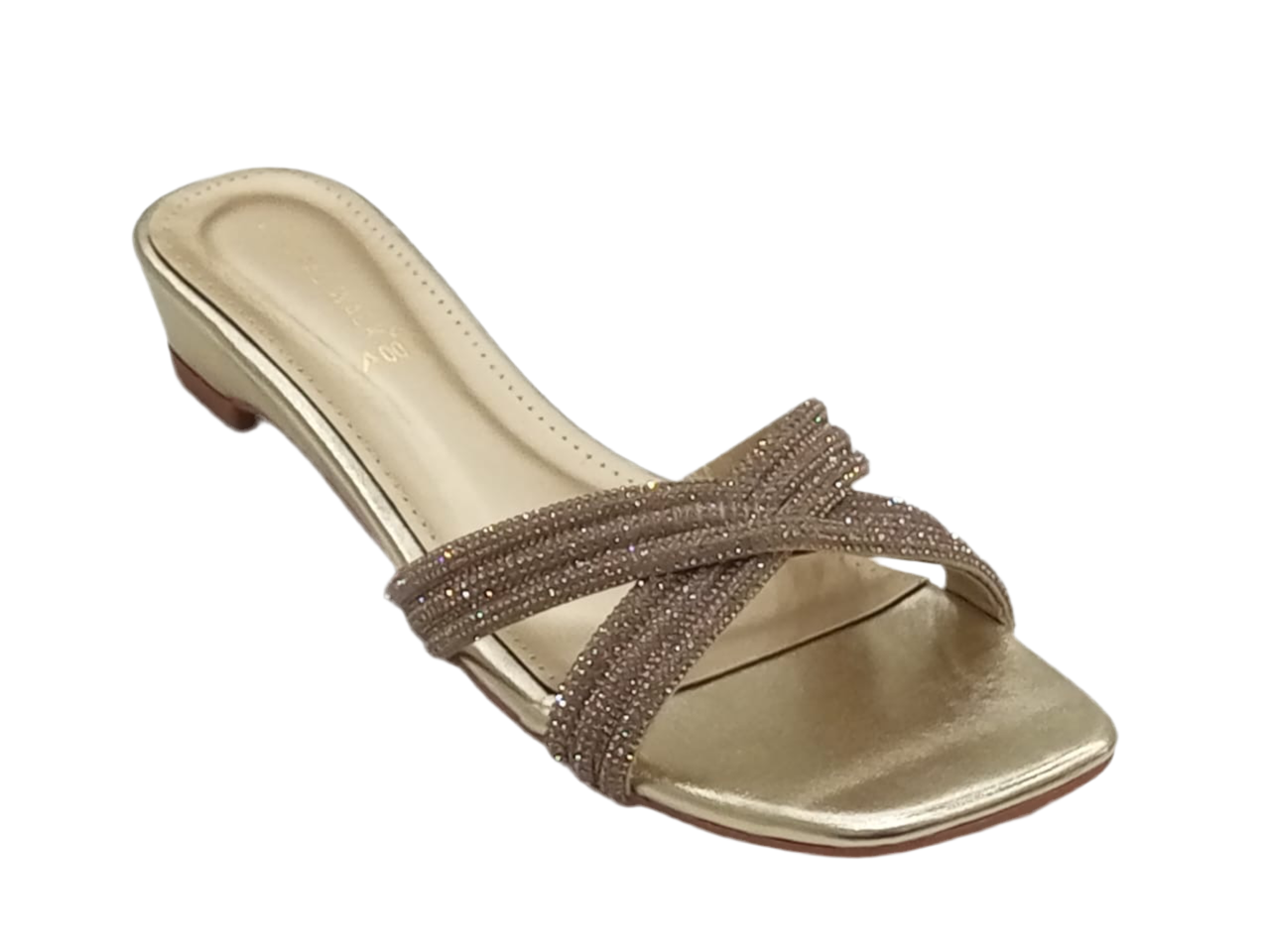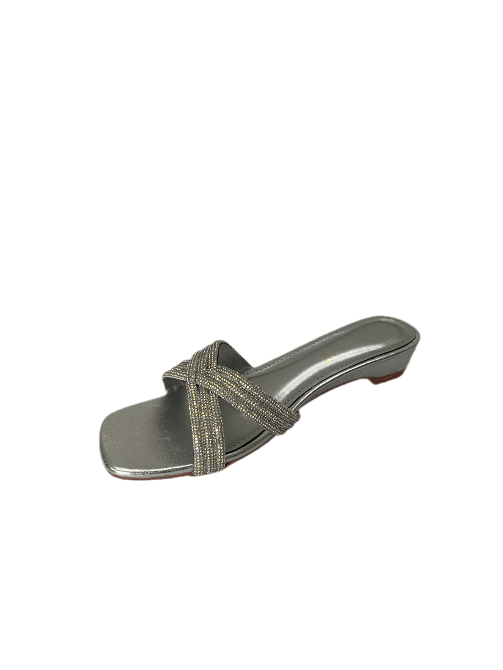 Ladies flat slippers in pakistan with a sleek metallic finish and modern square toe design.