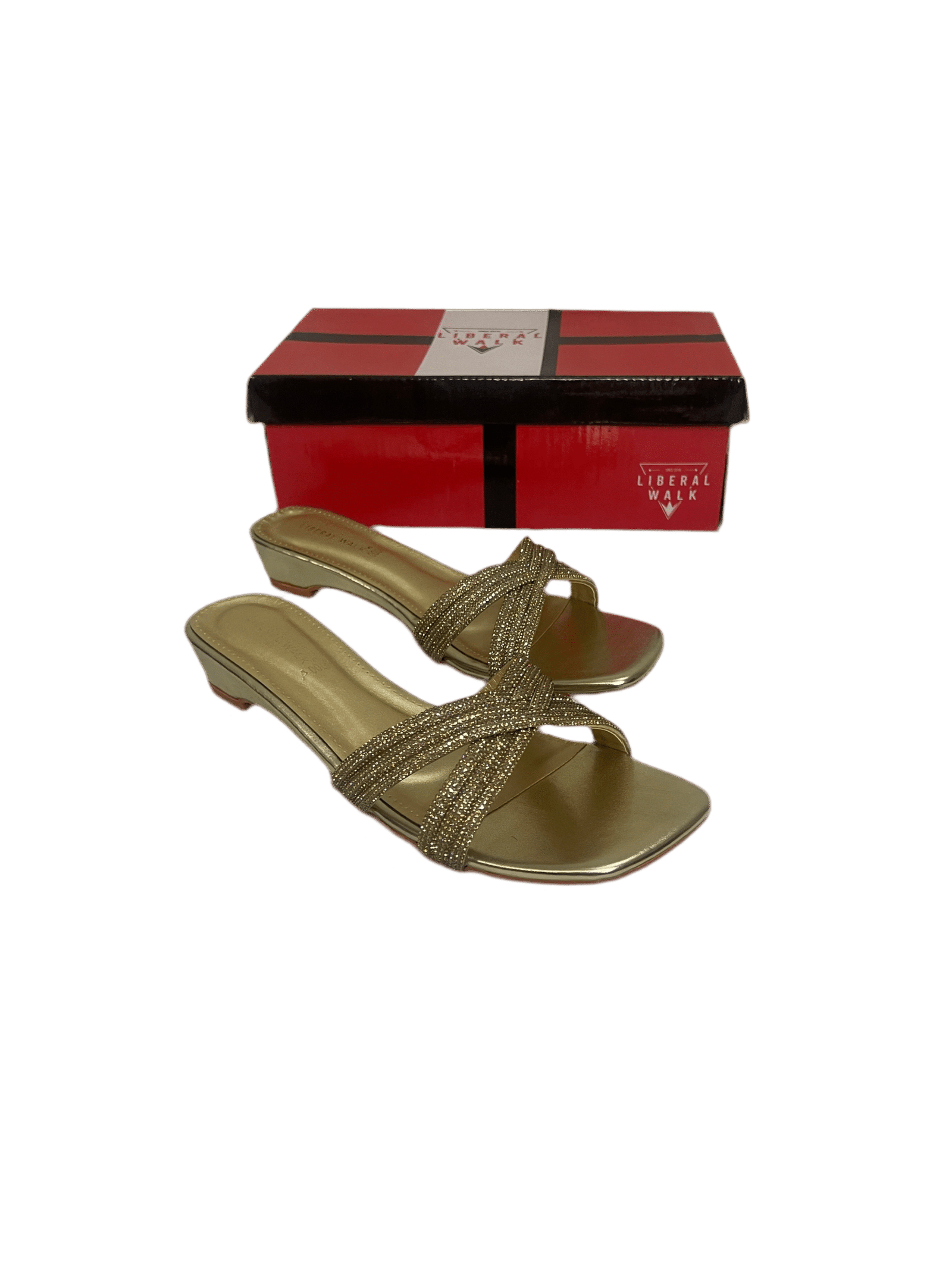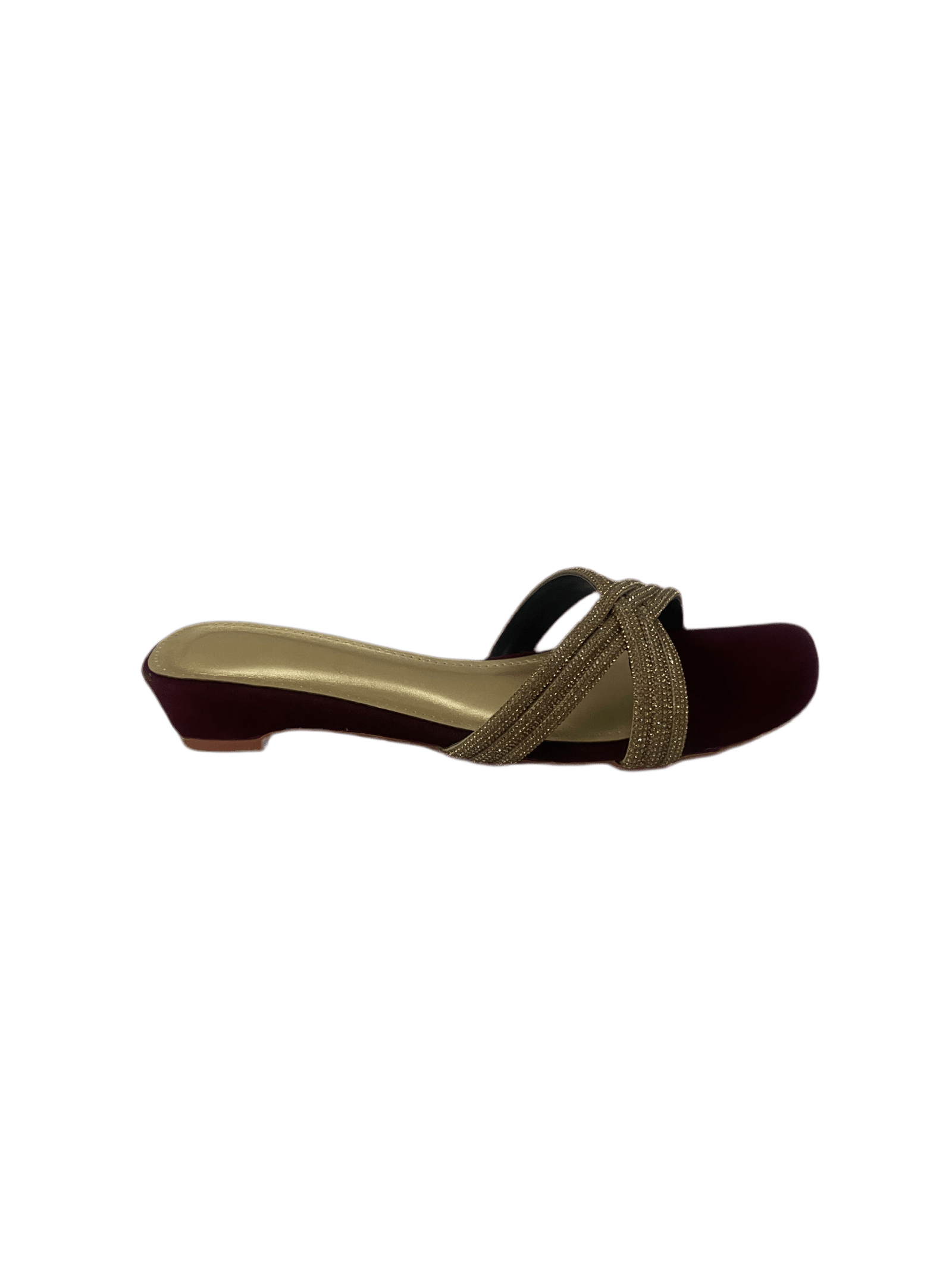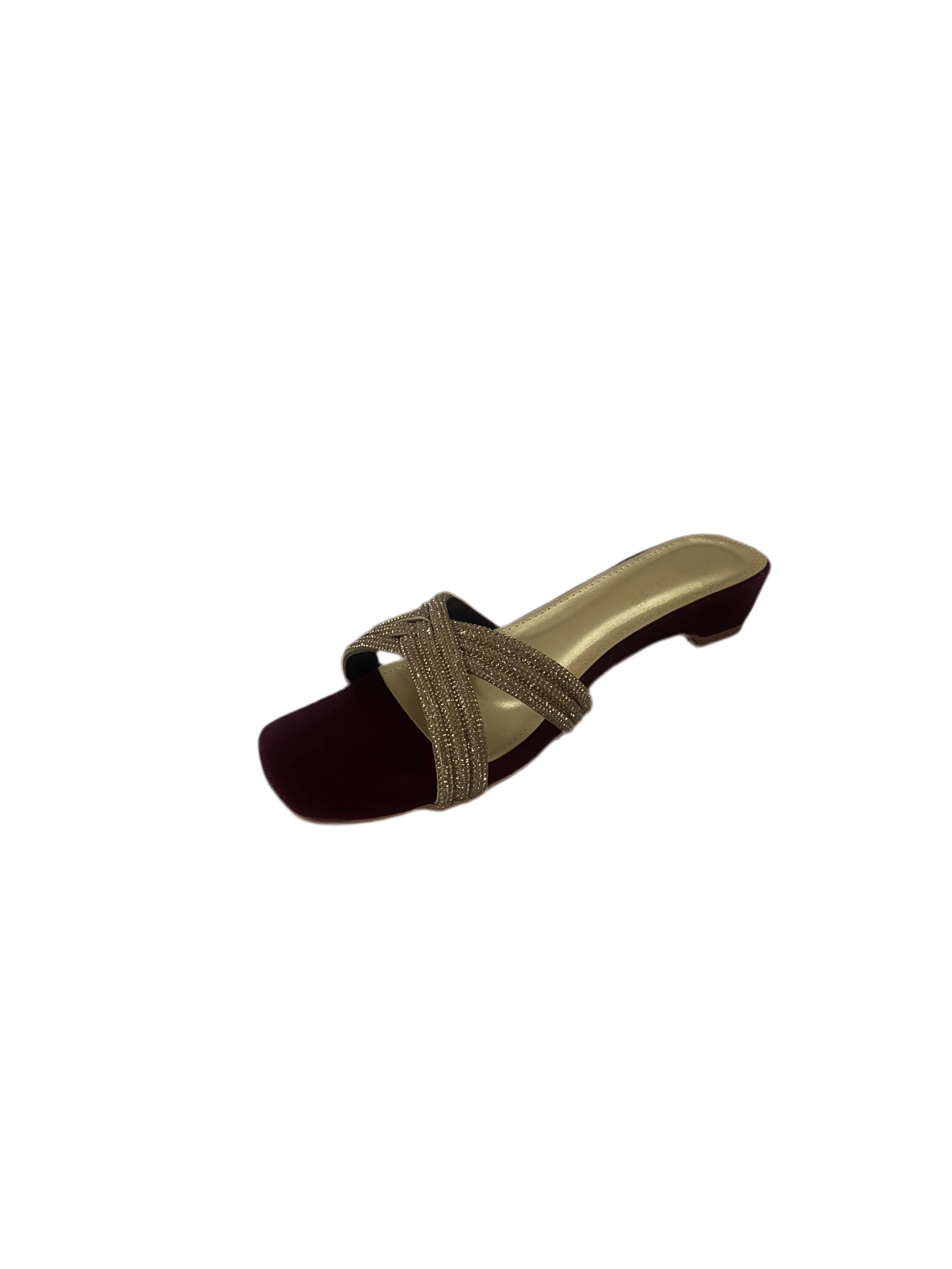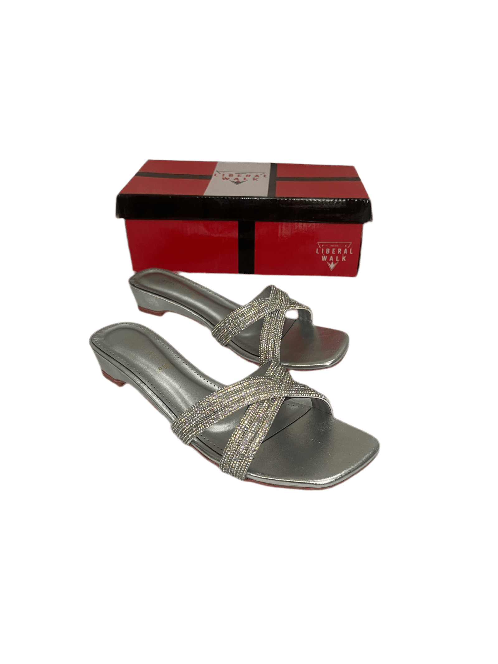 Ladies flat slippers in pakistan with a sleek metallic finish and modern square toe design.
