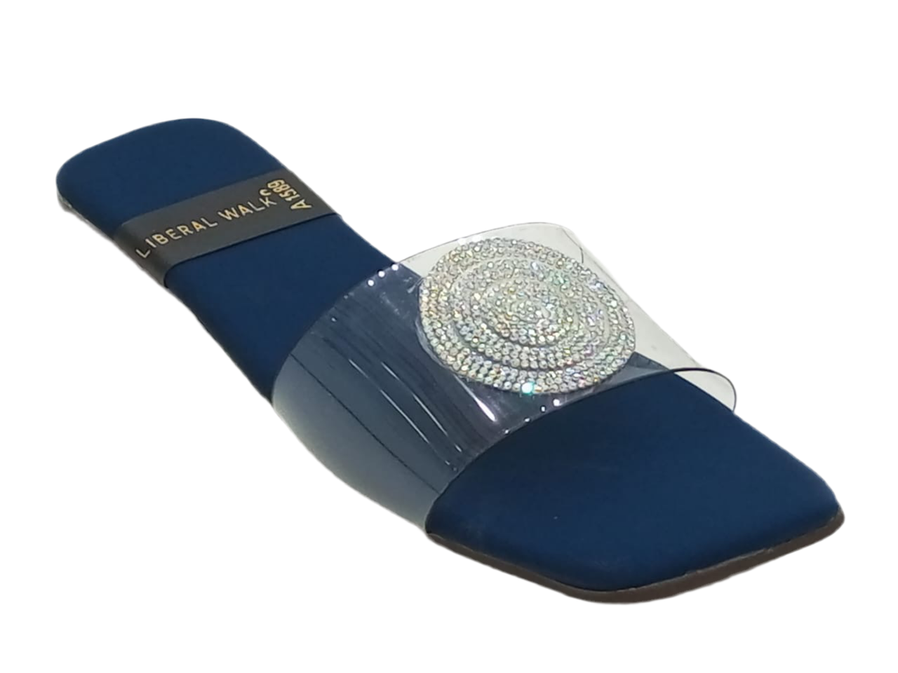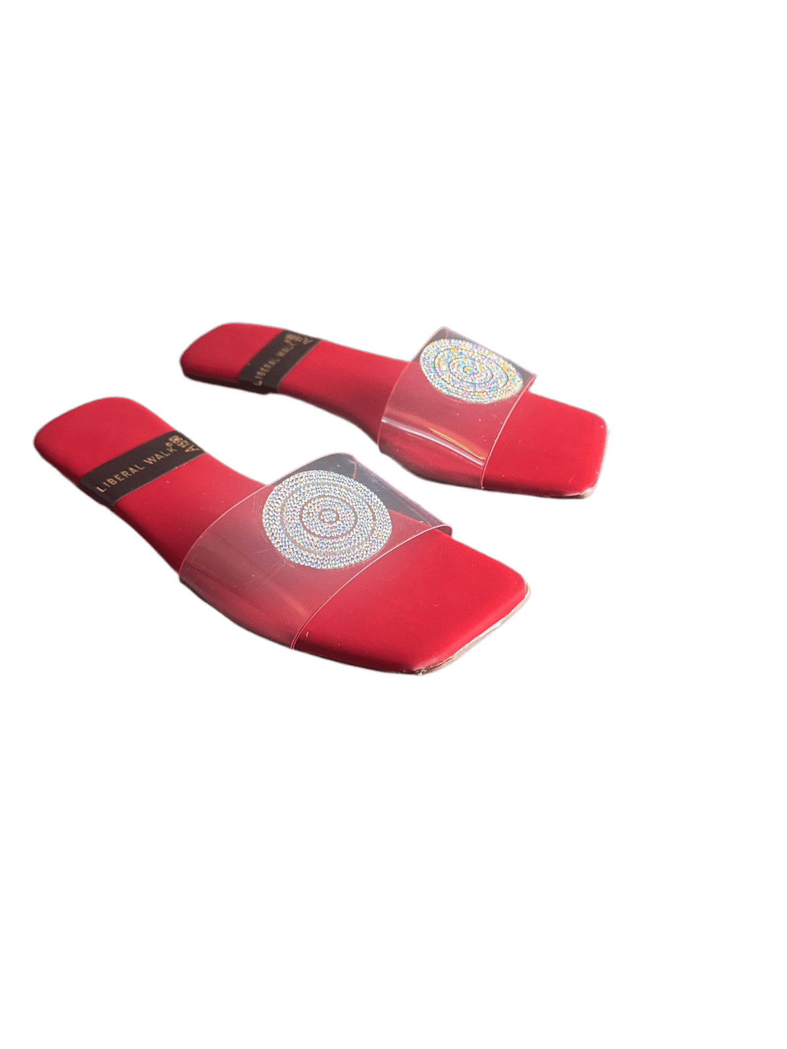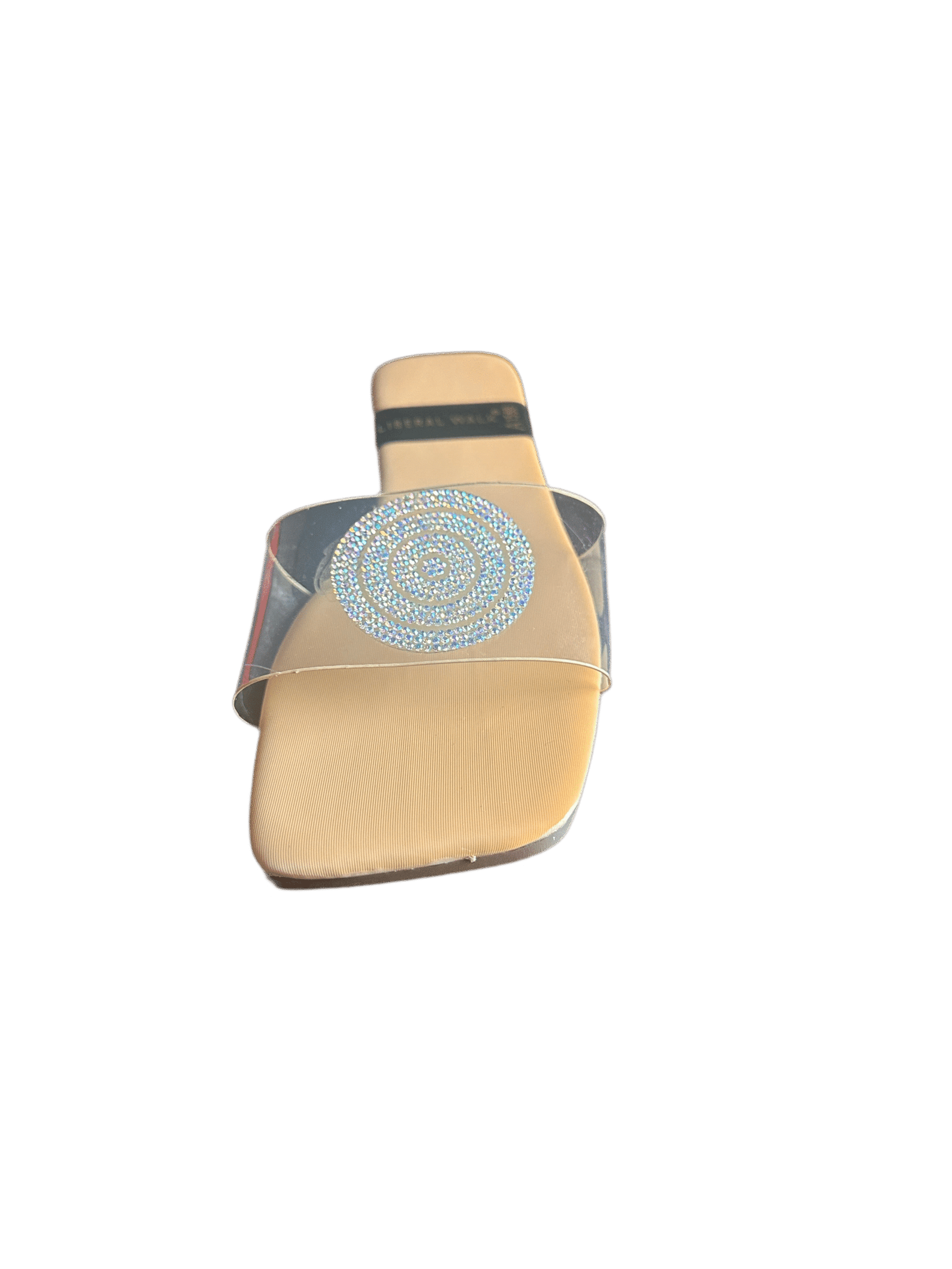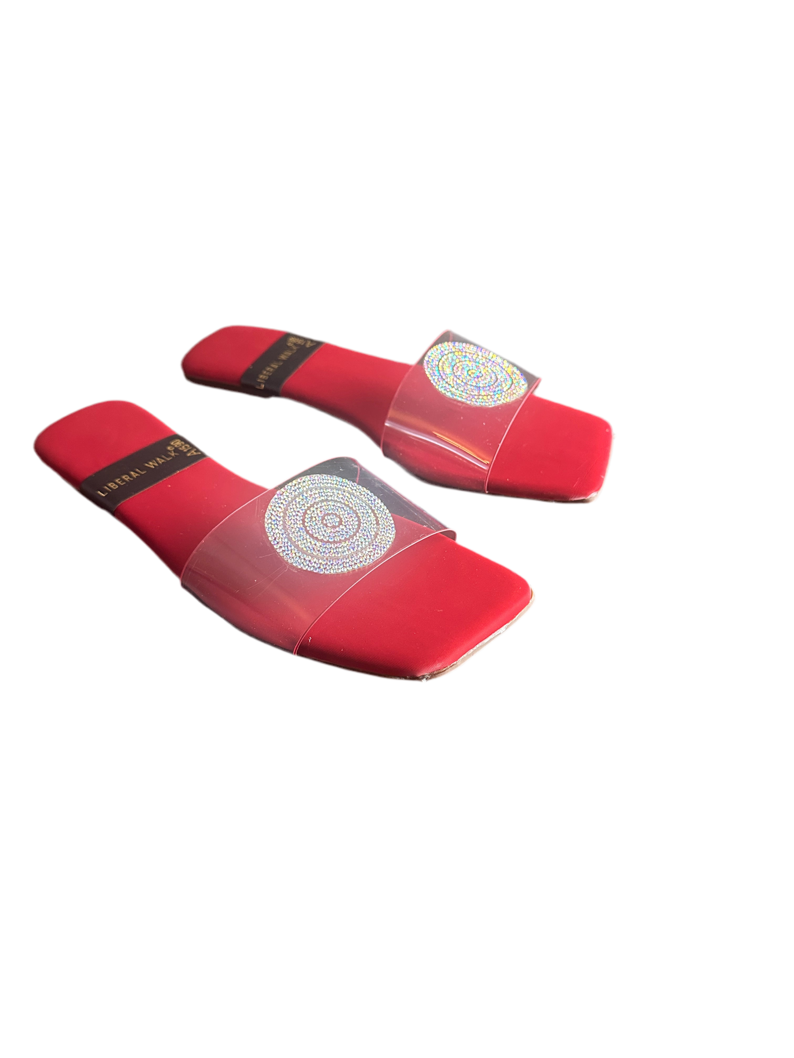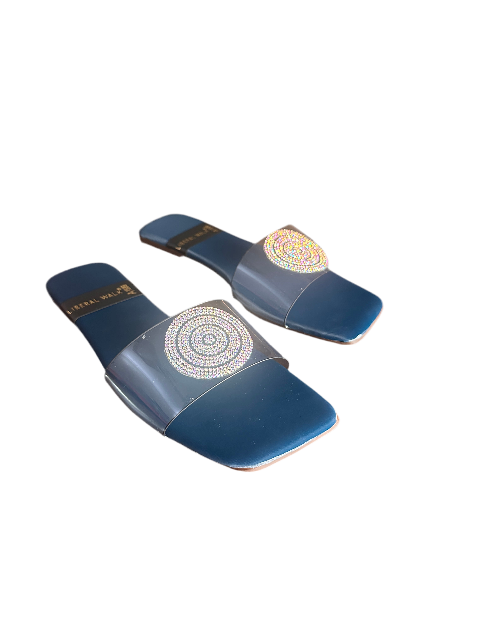 - Elegant transparent slippers in Pakistan with a rhinestone circular motif.