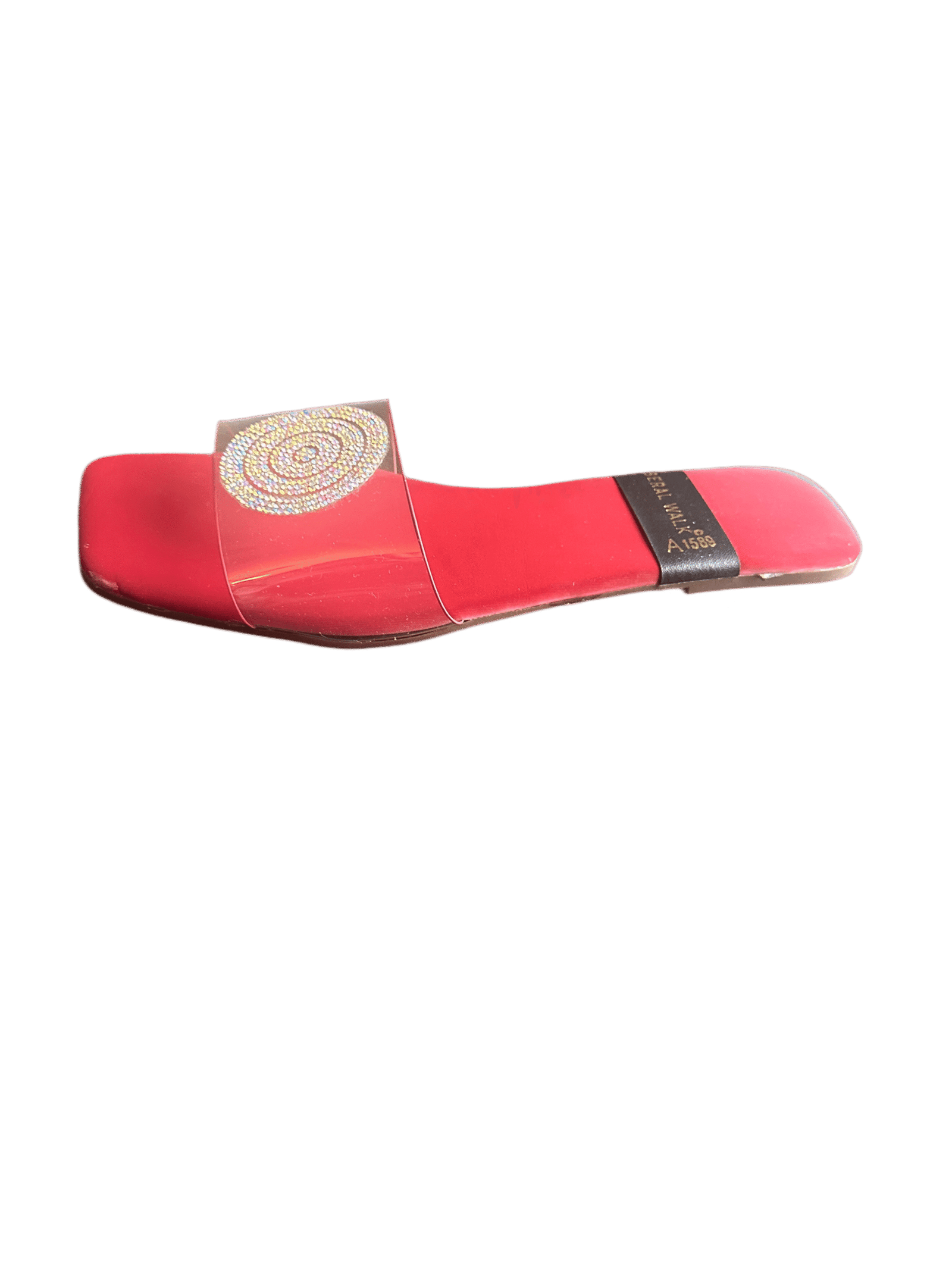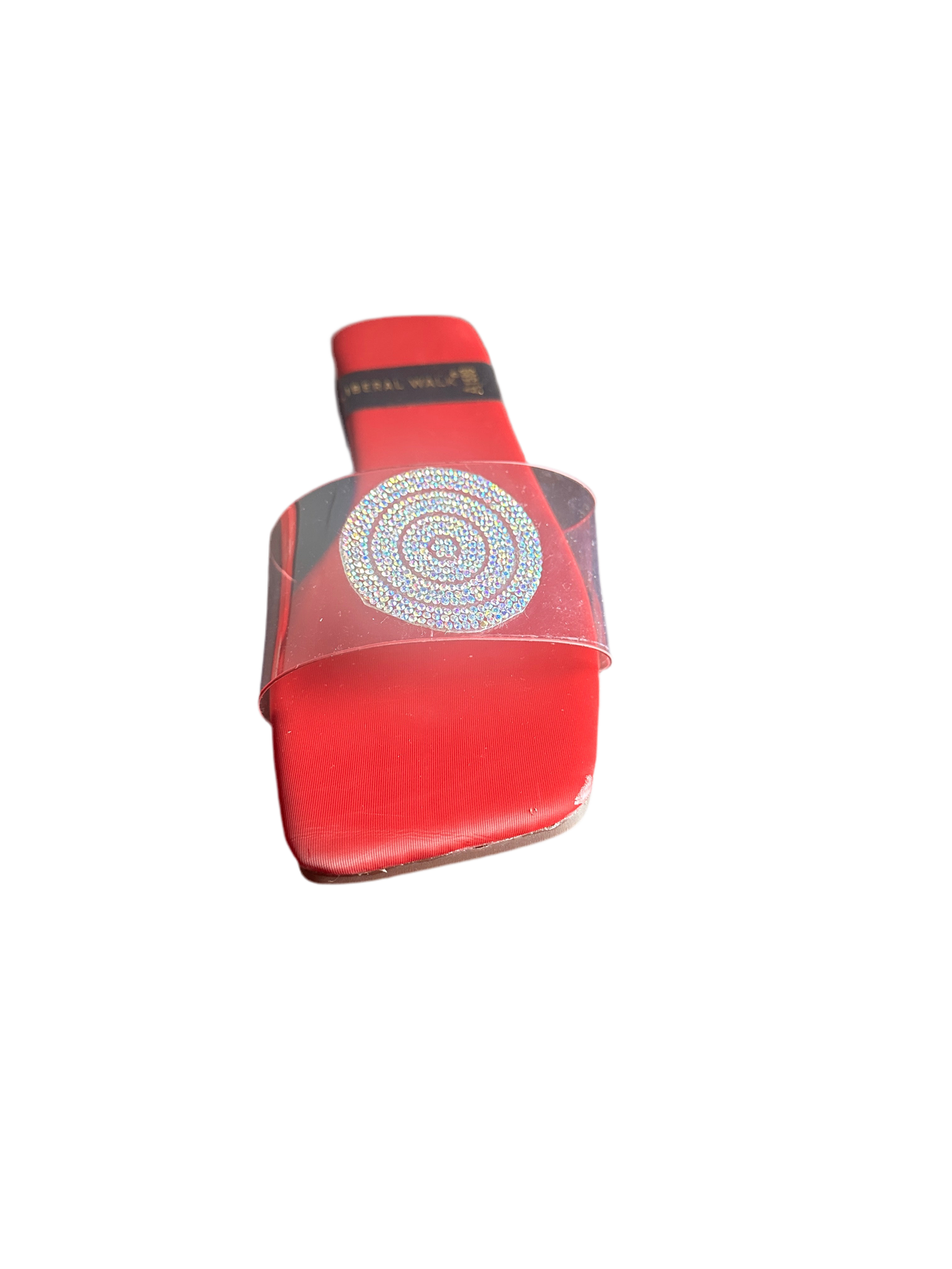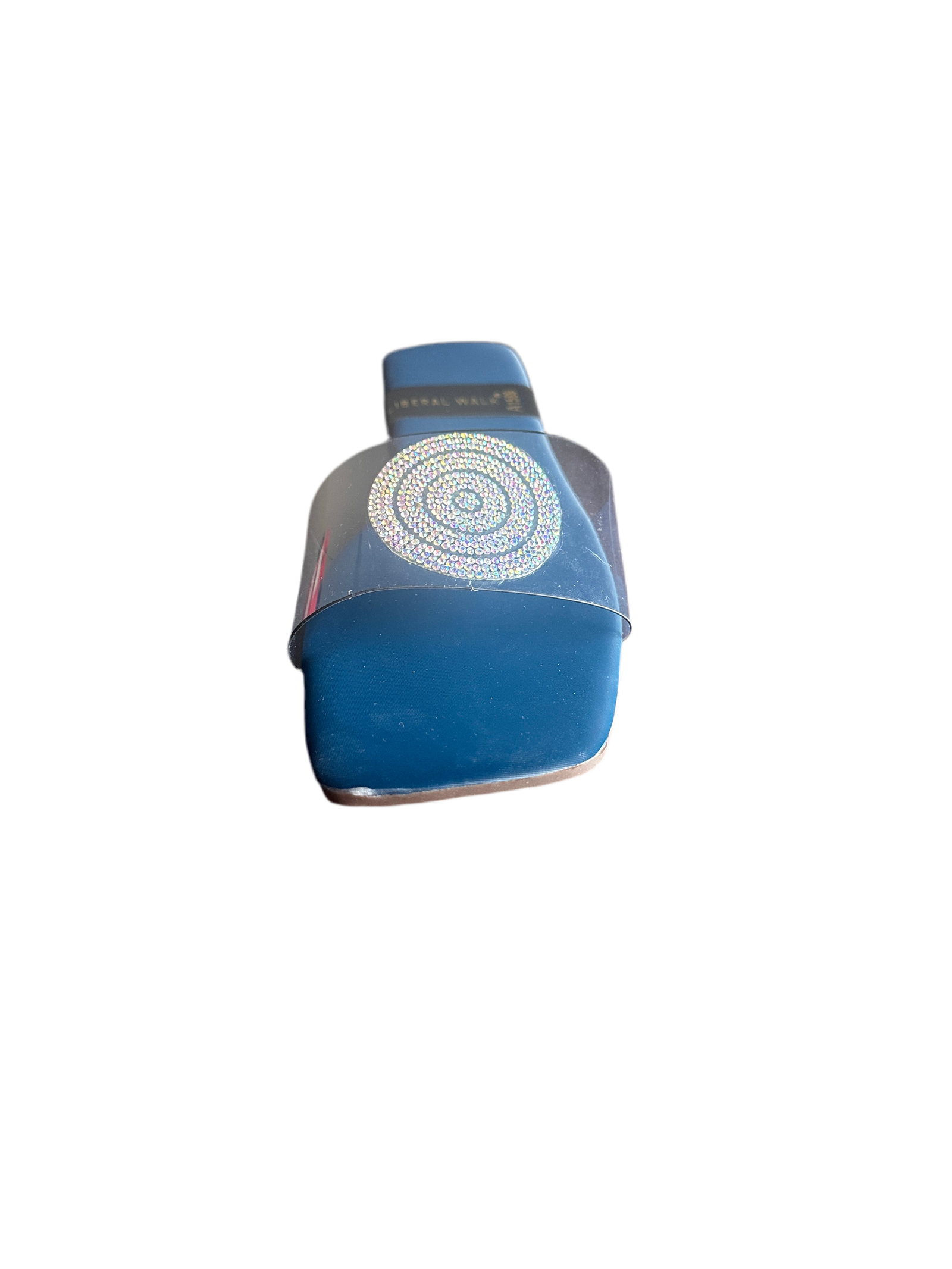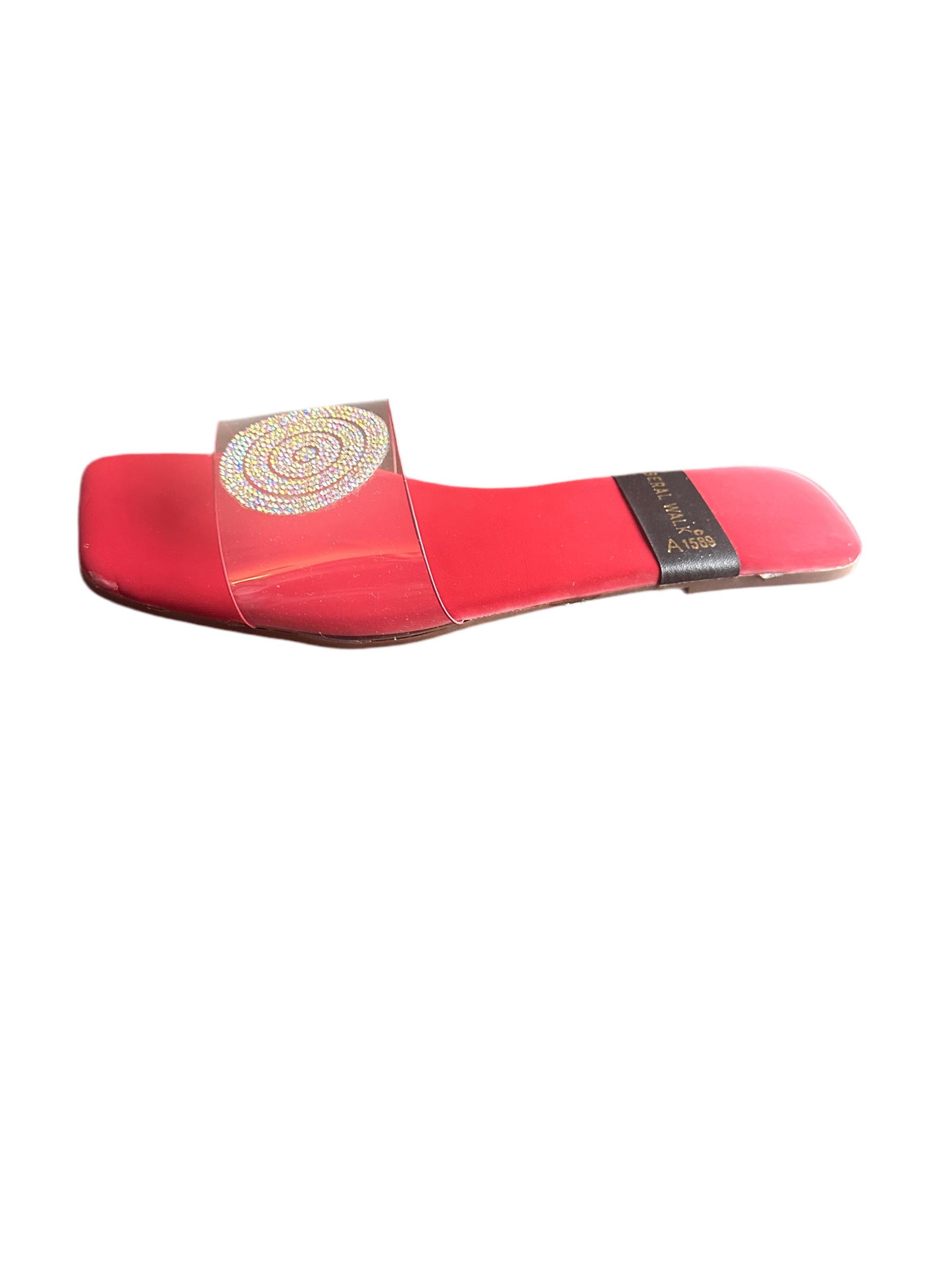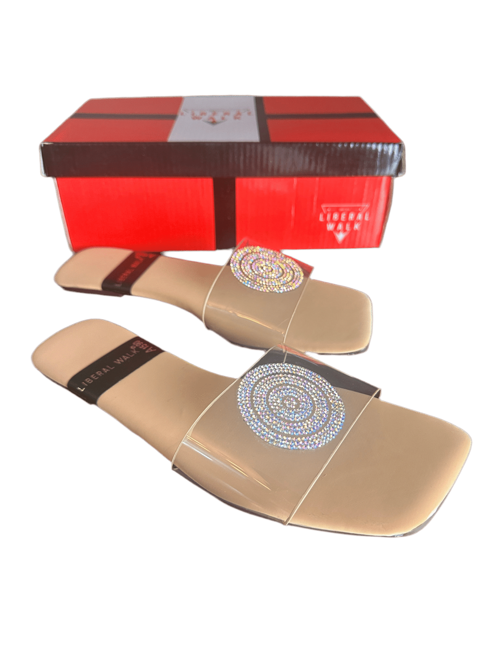 - Elegant transparent slippers in Pakistan with a rhinestone circular motif.