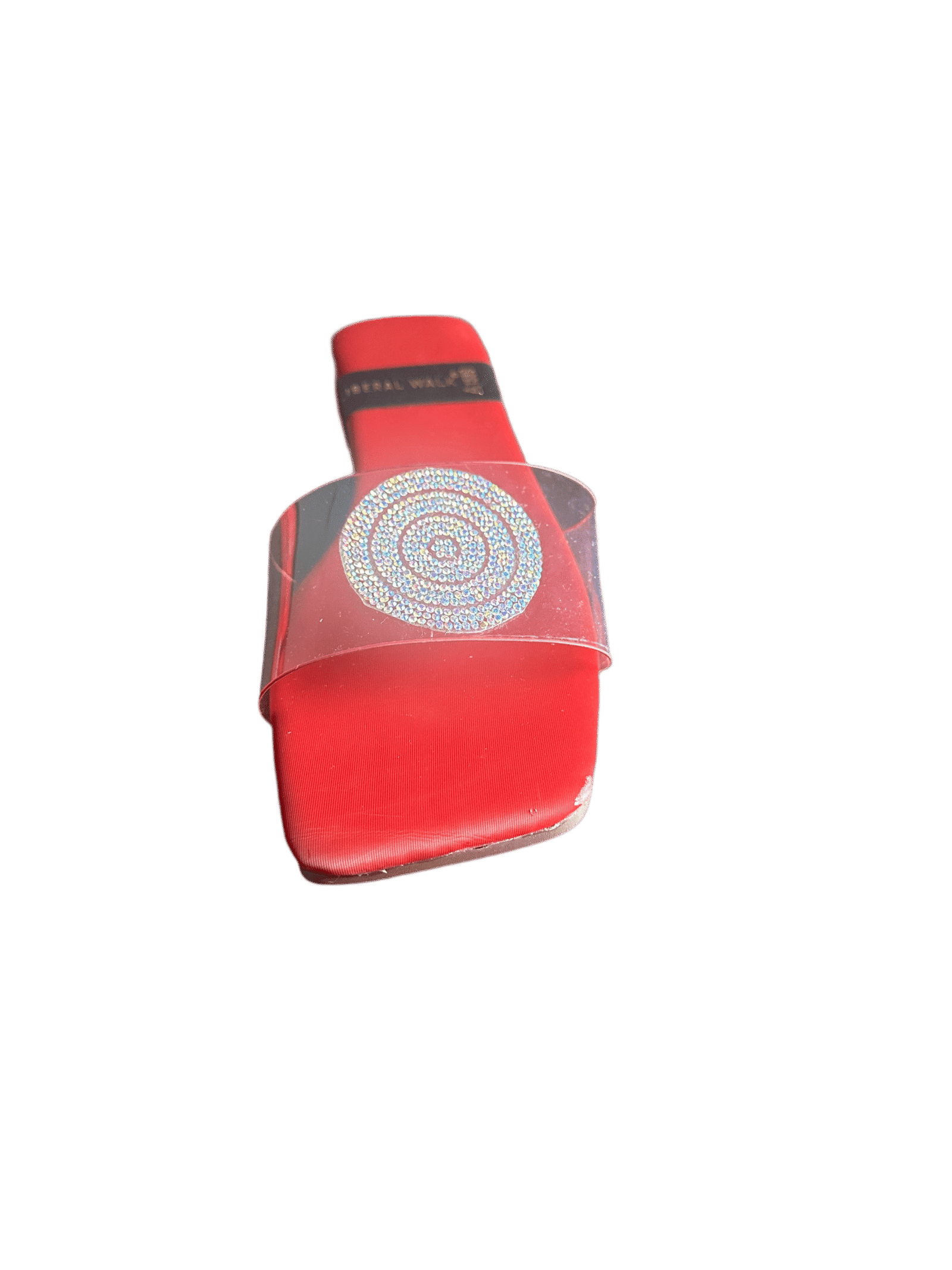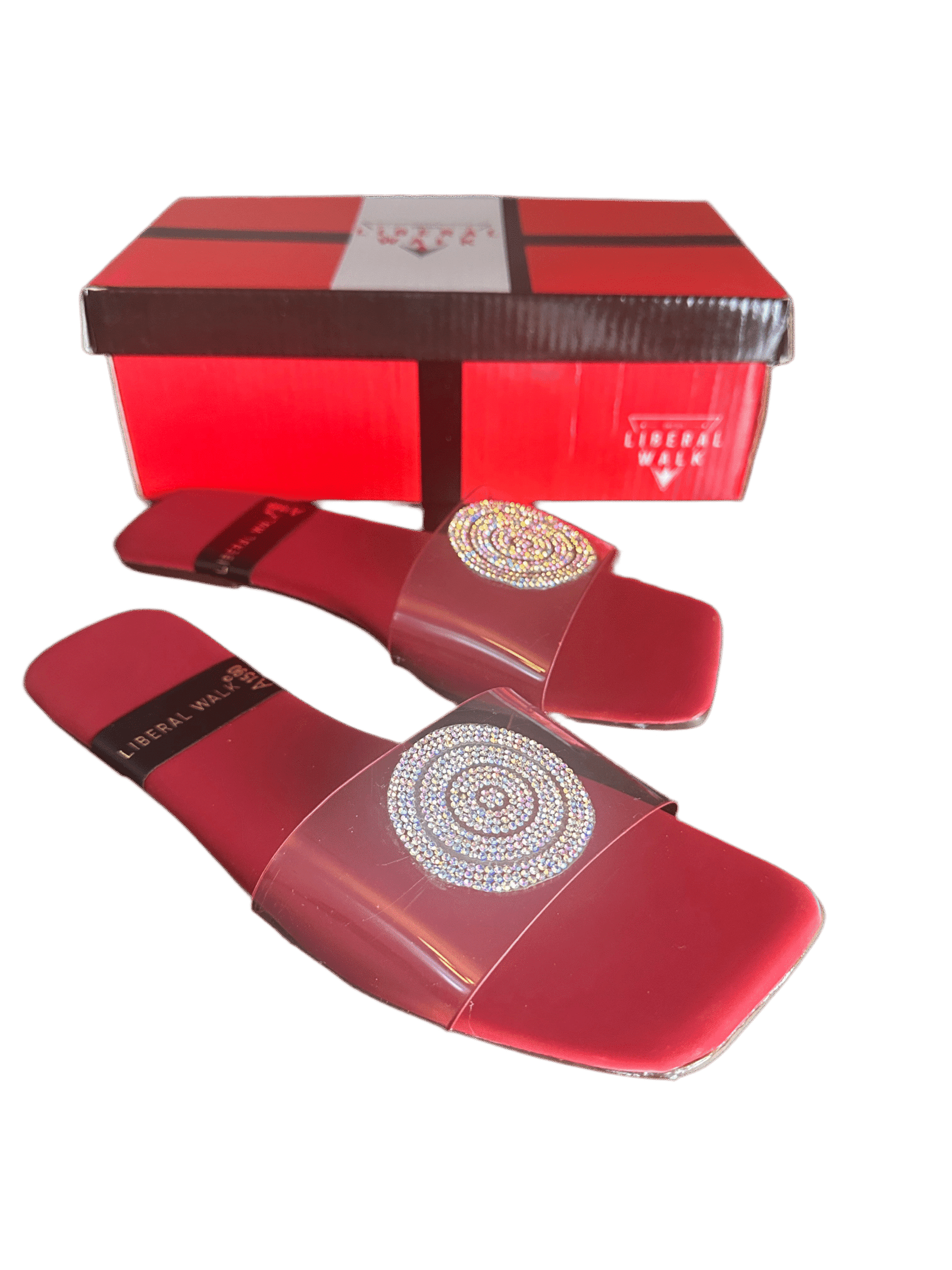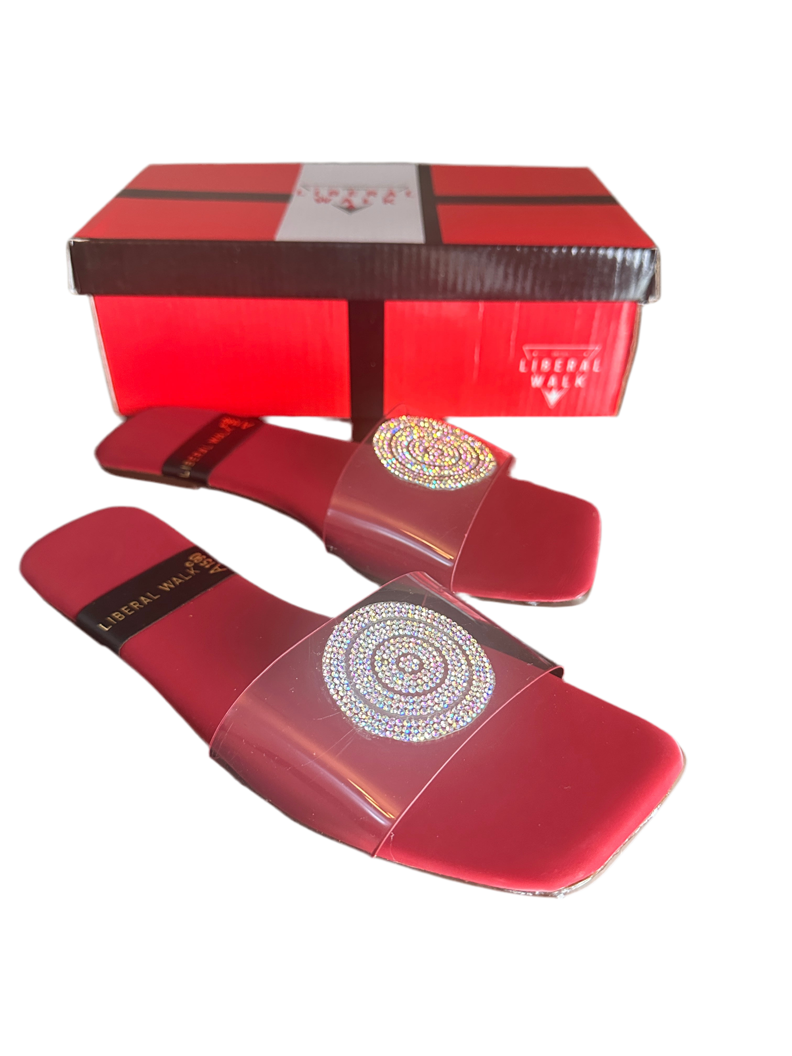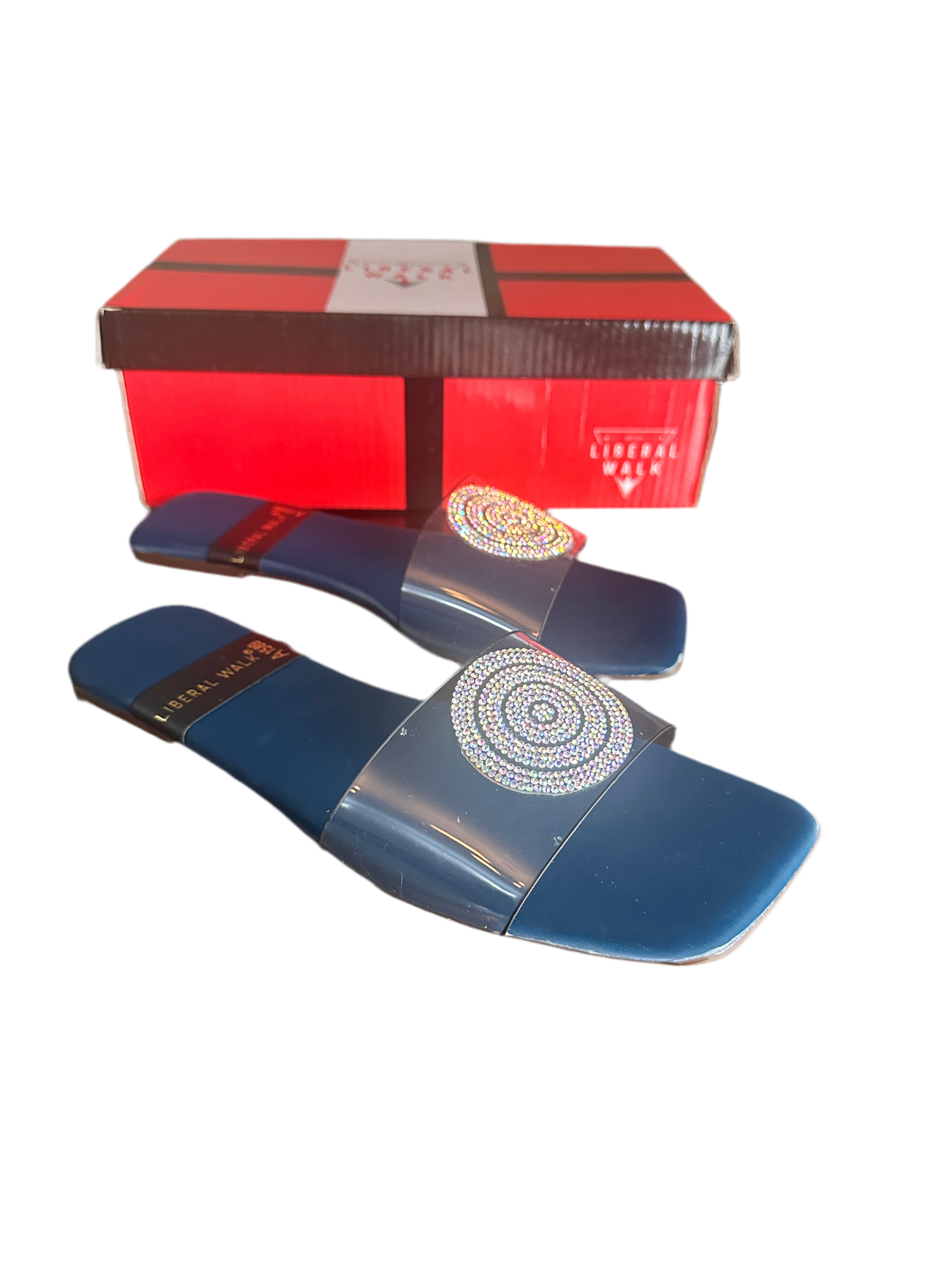 - Elegant transparent slippers in Pakistan with a rhinestone circular motif.